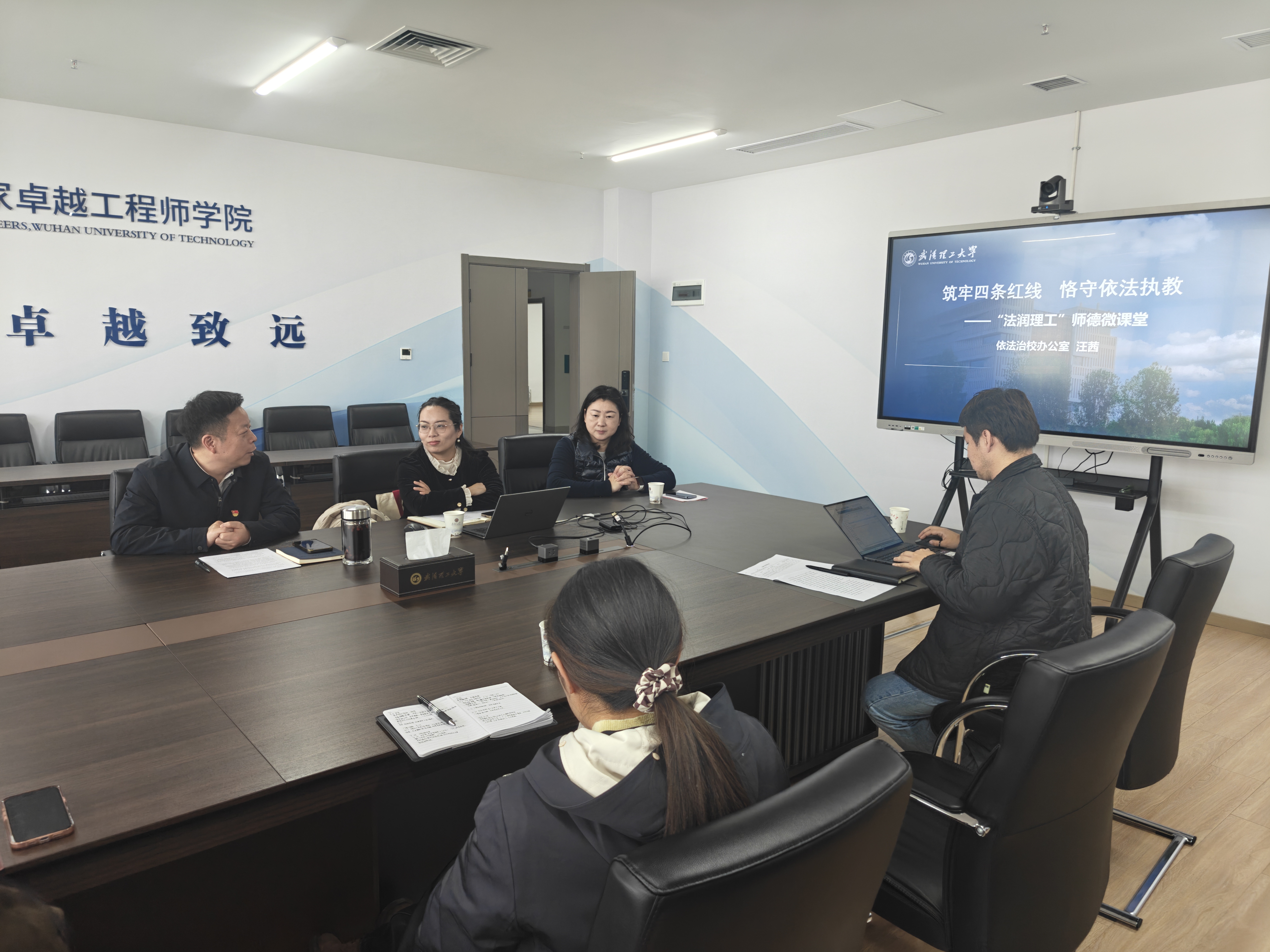 为深入贯彻落实习近平法治思想,推进法治校园与师德师风建设深度融合,12月29日晚,学院在军山校区学术交流中心902会议室举办“法润理工”法治师德课堂。邀请学校依法治校办公室主任汪茜主讲,活动由学院党委书记石琳主持,全体教职工参加。